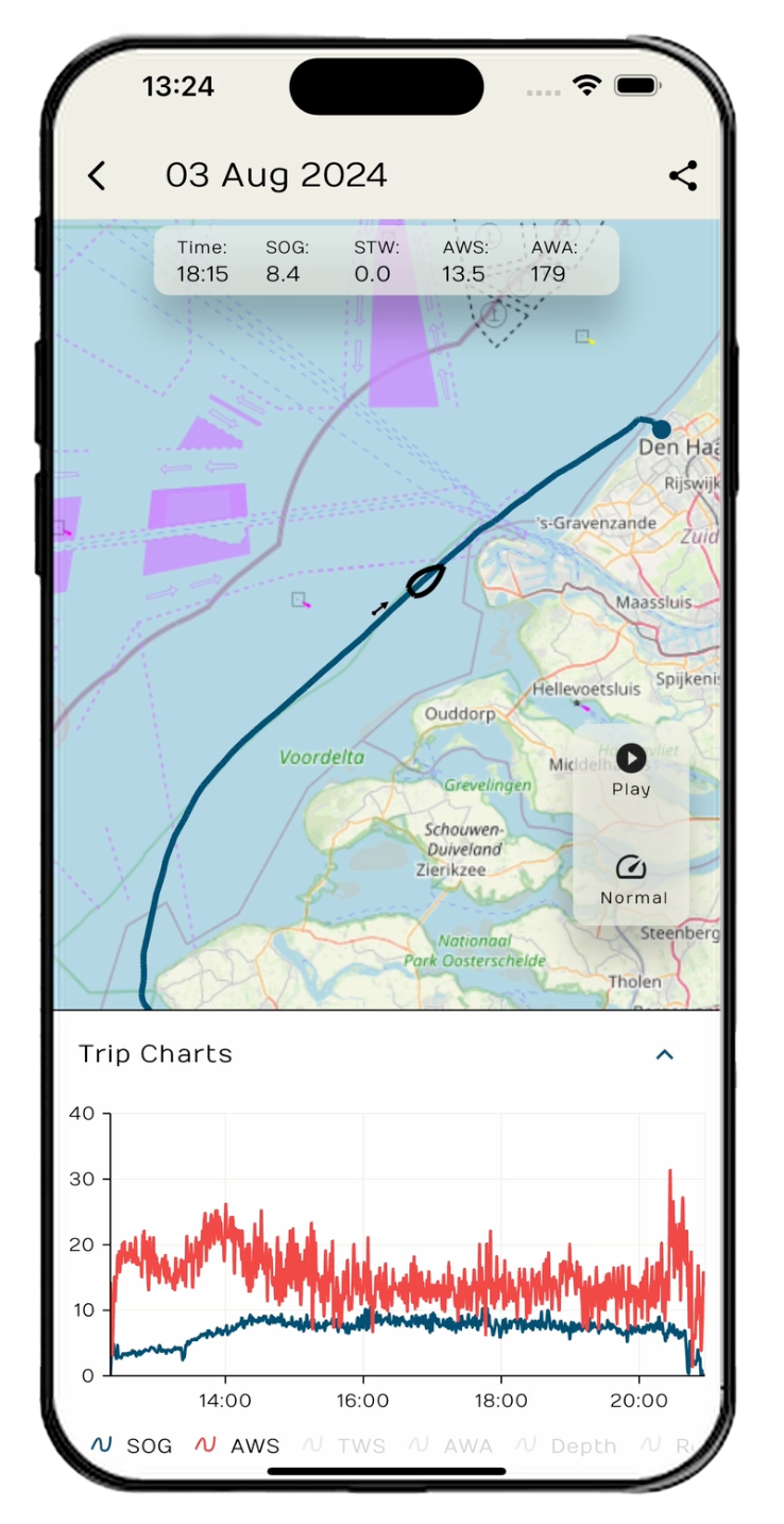 The SWAY app allows you to see your sailing trips, replay the trips and share them with friends and family.